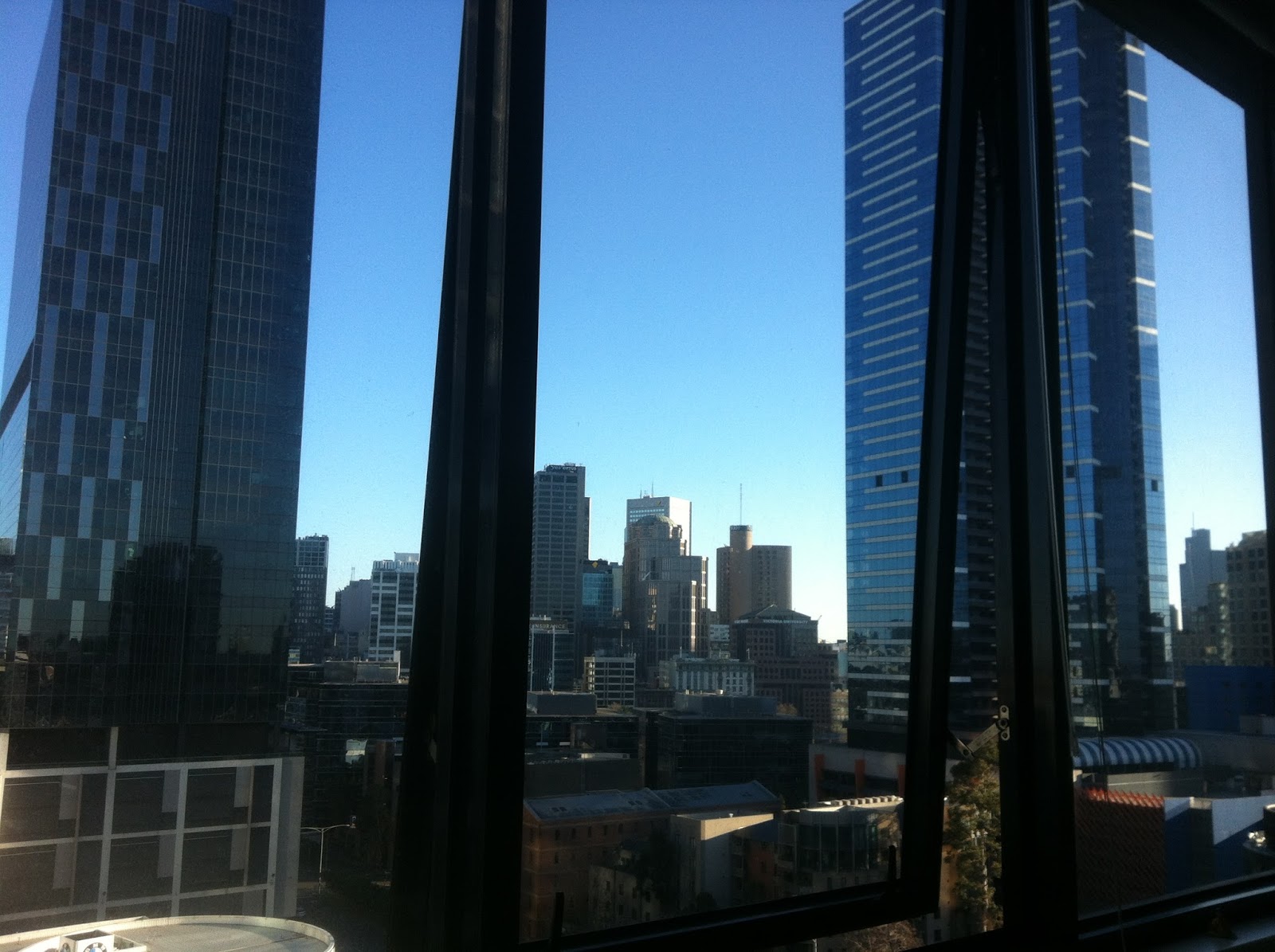 sky-scrapers stretching above us, among them the Eureka Tower,